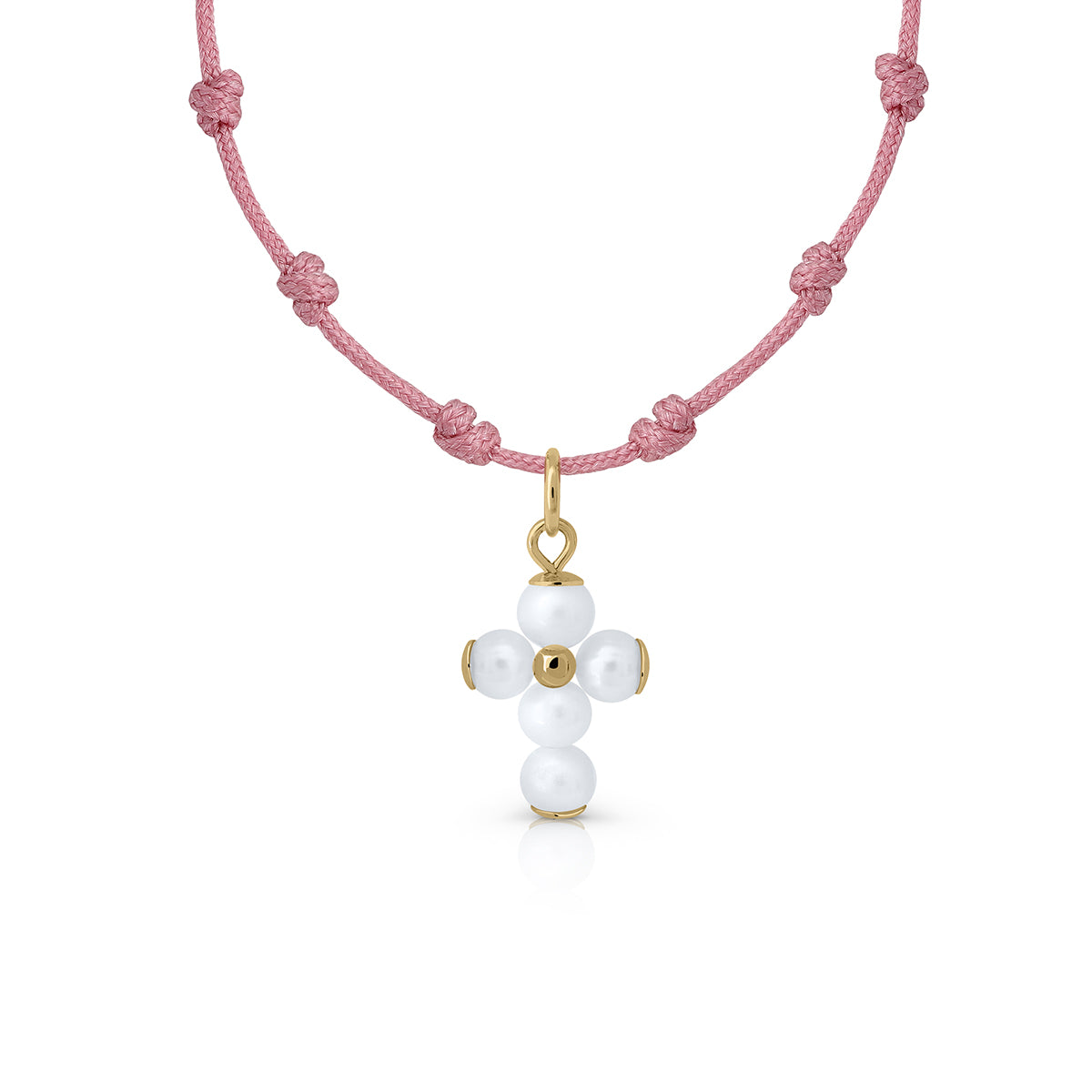 Collar oro mil nudos macramé cruz perlas