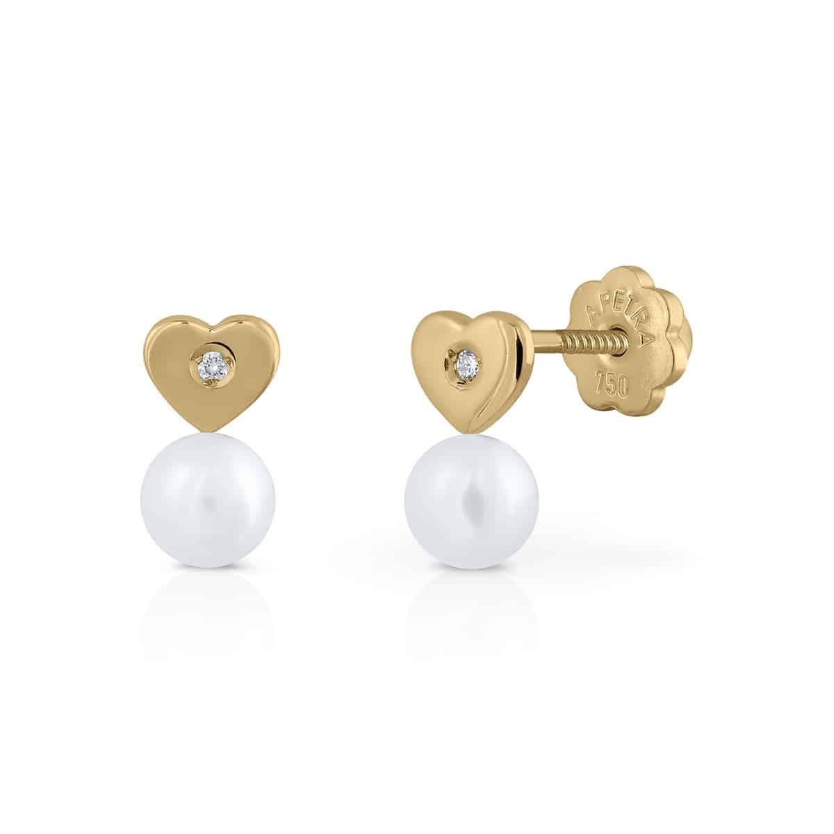 Pendientes Brillante con Perla Colección Tiny - Corazón