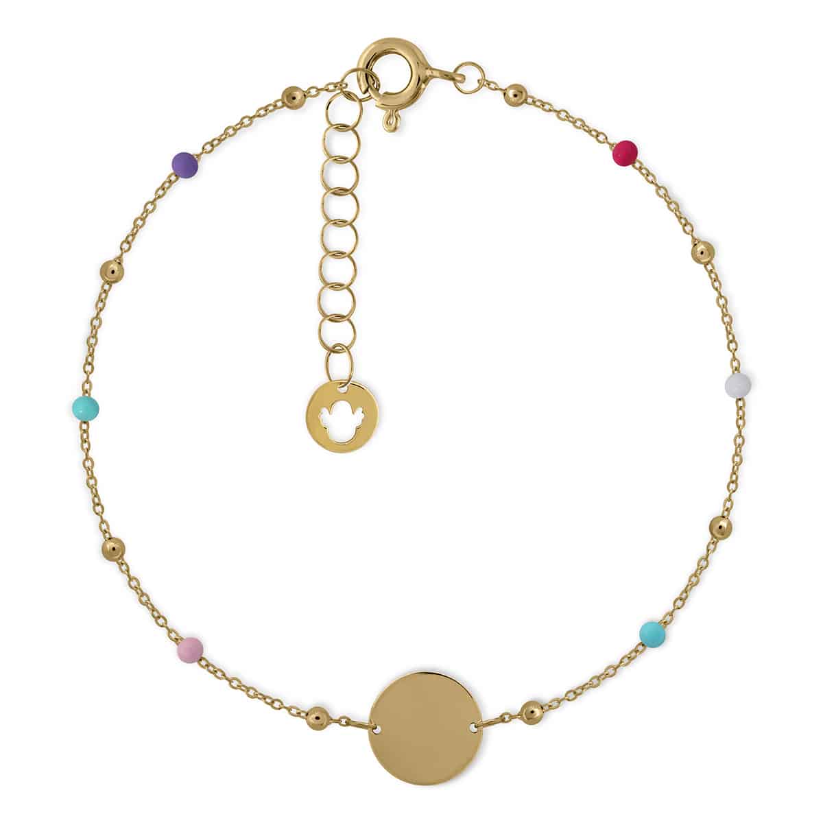 Pulsera de bolitas de anís esmaltadas a mano con chapa de oro 18k de 8mm en el centro.