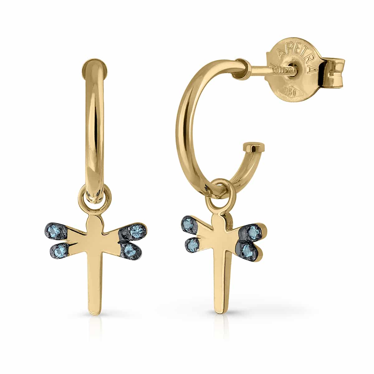 18K gold earring of our dragonfly Lula, decorated with coloured topaz on her wings.
