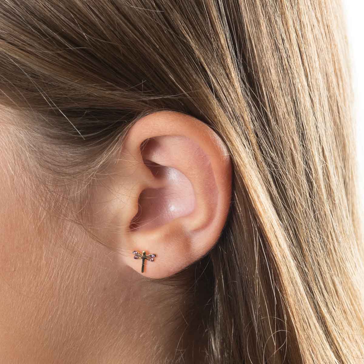 18K gold earring of our dragonfly Lula, decorated with coloured topaz on her wings.