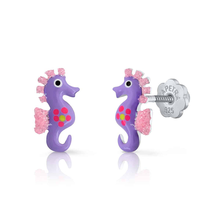 Sea-horse Enamel Earrings Before using rhodium-plated silver for the first time, you need to make sure you do not suffer from allergies to any of these metals. To avoid infections when using rhodium-plated silver earrings in recent perforations, these should be completely scarred. Since our enamel are all hand-made, they may present variations in design/colour. This would not be considered a fault but an added value for being a handcrafted work.