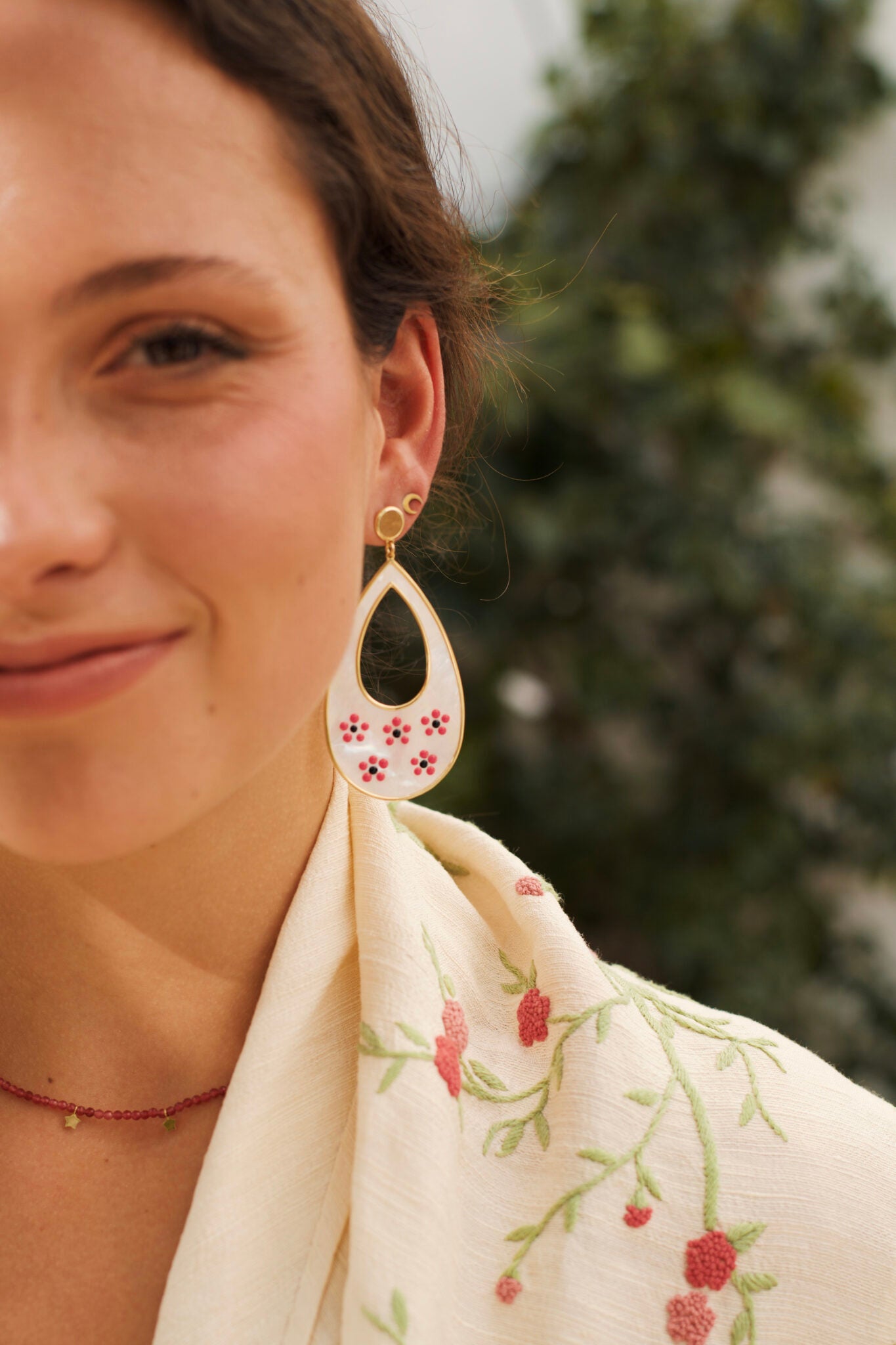 Combine the pink Flamenca pear-shaped threaded earrings with the Spinkerles collection.
