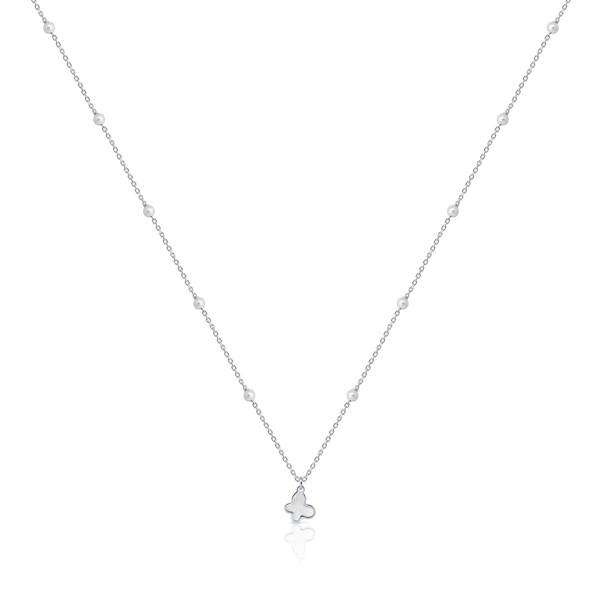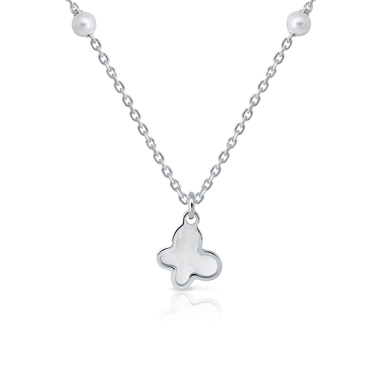 Teenies Collection Necklace - Tulip La Petra's Teen Collection is composed of different motifs made of silver and mother-of-pearl as the main element. Mother-of-pearl is a material that we use a lot, we love it. It is an organic-inorganic element, normally white in colour, which is shiny and has iridescent reflections. Mother-of-pearl has irregularities in its shape and this makes each piece different. The pieces have a special shine and different colours, no two are the same.